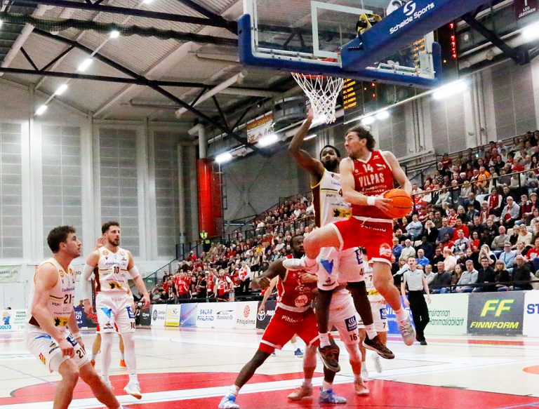 Salon Vilpas tyrmäsi Uudenkaupungin Korihait lauantai-iltana Salohallissa Korisliigan kolmannessa välierässä.Kotijoukkueen kaksituntinen ilonpito hiljensi haiden faniryhmät molemmin puolin katsomoa; salolaisryhmä sen sijaan lauleskeli tapansa mukaan vielä pitkään pelin