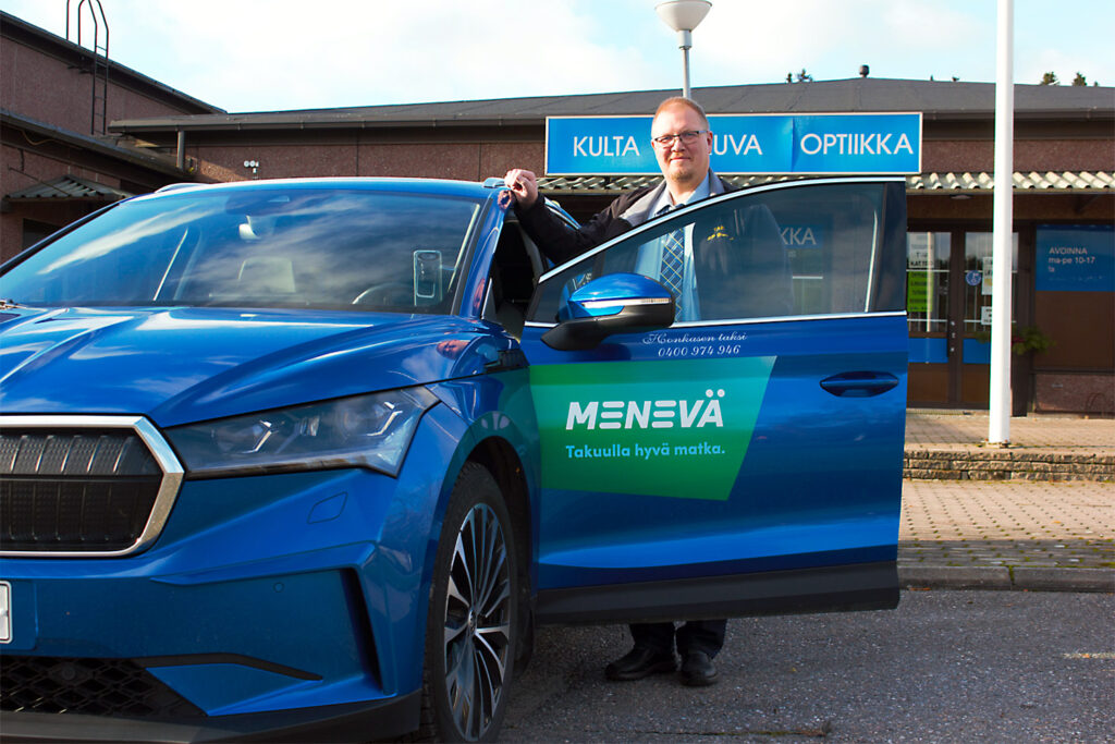 Perniöläinen taksiyrittäjä Juha-Pekka Honkanen päivitti tämän vuoden kevättalvella ajokalustoaan Skoda Enyaq -mallin sähköautolla.
