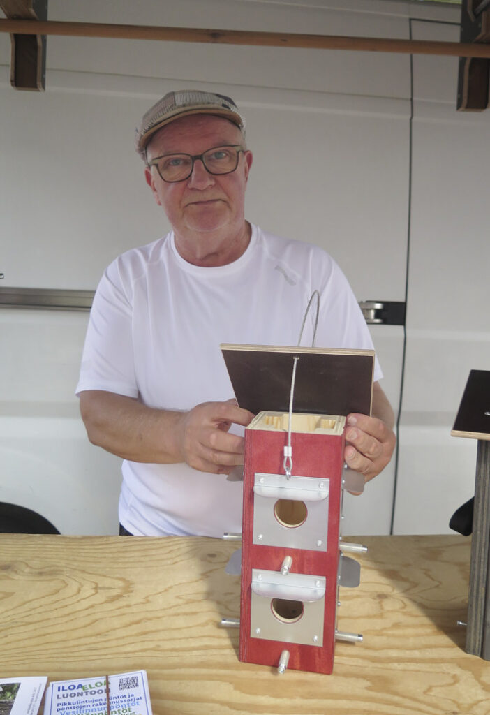 Viljamakasiinin edustalla oli tuttuun tapaan erilaisia kojuja, kirpputorimyyntiä ja paikallisten yhdistysten edustajia. Yhden kojun myyntiartikkeli herätti huomiota: ”Pystybaari. Vimpanpäälle hyvä keksintö talipötkölle.” Kyseessä oli Harri Tuomen vuonna 2017 perustama, erilaisia linnunpönttöjä valmistava ja myyvä yritys toinenluonto.fi.