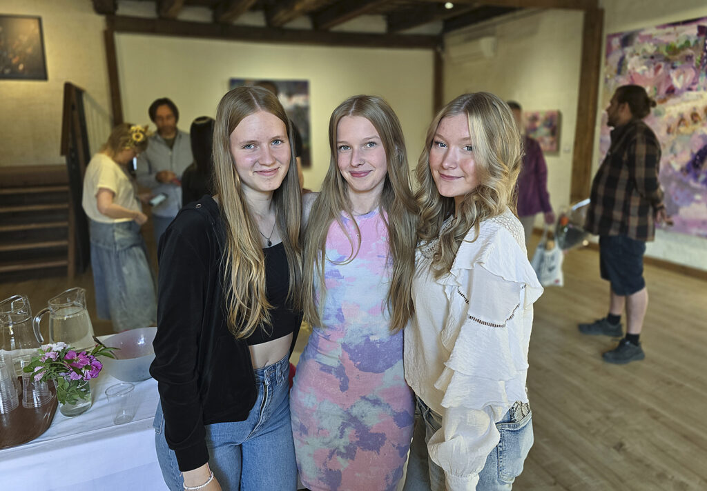 Kulttuurista ovat kiinnostuneet myös Wiurilan kesän näyttelyn kesätyöntekijät Miisa Wiman, Jasmine Vatanen ja Lumiella Salmiranta, jotka kestitsivät ensimmäisen työviikkonsa päätteeksi näyttelyn avajaisvieraita mansikoilla ja kuohuvalla.
