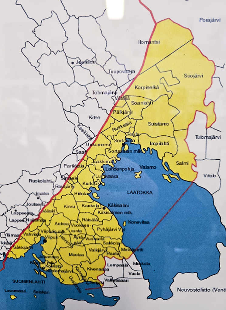 -Tämä alkaa siitä, mikä oli tilanne ennen talvisotaa, Vehosalmi sanoo ja viittaa ensimmäiseen kuvaan.
