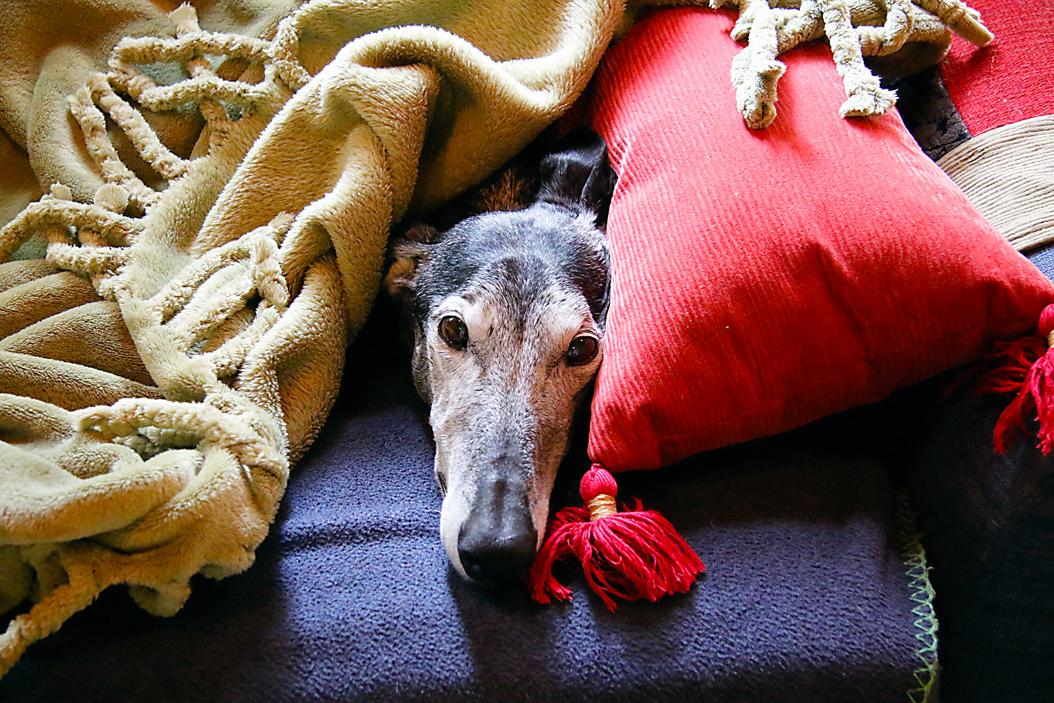 -Se on kyllä aito espanjalainen señor: nuorempana se otti aurinkoa ja tykkäsi nukkua kuumassa autossa, nyttemmin se on hieman suomalaistunut. Se on edelleen auringosta onnessaan, muttei vaan enää jaksa olla kuumassa niin kauan. Roci rakastaa olla peiton alla eikä halua lähteä sieltä mihinkään etenkään huonolla kelillä. Pitkistä lenkeistä se ei välitä, toisinaan pitää kääntyä kotiin kun en kehtaa raahata vastahakoista koiraa pitkin Märyn raitteja. Se on peloton, utelias ja seurallinen, vaikkakaan ei ehkä kovin älykäs. Luulin aiempien kokemusteni perusteella, etteivät vinttikoirat kuolaa. Rocille voisi sanoa kuin elokuvassa Turner ja Täystuho: Ihan näin meidän kesken, sinulla on vakava kuolaamisongelma! Johtunee siitä, että Roci rakastaa ruokaa.