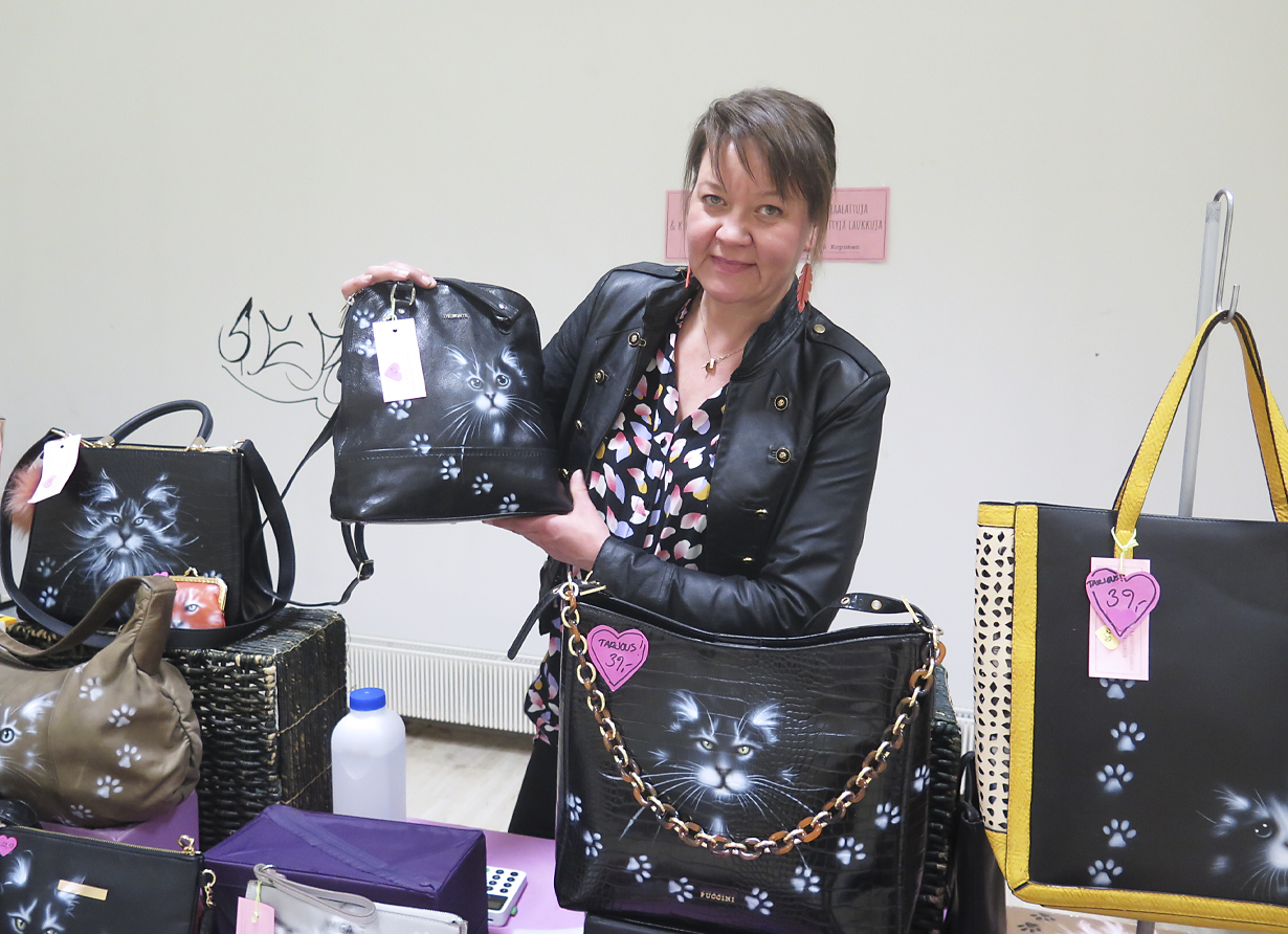 Aivan ainutlaatuisen idean on kehittänyt lohjalainen Eija Koponen, jolla on myynnissä käsinmaalattuja tuotteita, suurimmaksi osaksi kierrätettyjä. Viehättävä ja arvoituksellinen kissa katselee laukkujen kyljistä, saappaista ja kengistä. Tarjolla on taatusti yksilöllisiä lahjaideoita, jotka eivät tule joka pojalla tai tytöllä vastaan.