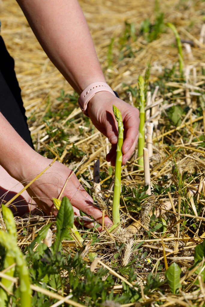 – Parsa on ensimmäisiä kasveja, jonka sadon voi korjata. Eihän mikään ole valmista vielä näin toukokuussa! Juurakoista nousee parsoja yksi kerrallaan, ja niitä sitten poimitaan sitä mukaa kun niitä tulee leikaten veitsellä tai vaikka käsin taittaenkin pari senttiä maanpinnan yläpuolelta. Tämän vuoksi jos aikoo perustaa parsapenkin, kannattaa ennemmin laittaa niitä kerralla kymmenen kuin kaksi – ellei sitten tahdo syödä kuin yhden parsan päivässä, Paakki naurahtaa.