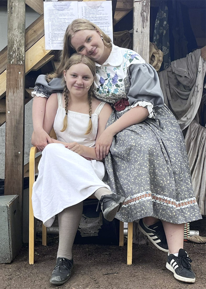 Salli (14) ja Helmi (17) Reponen ovat monta kesää näytelleet yhdessä Sauvon kesäteatterissa eli tuttavallisesti Selkussa.