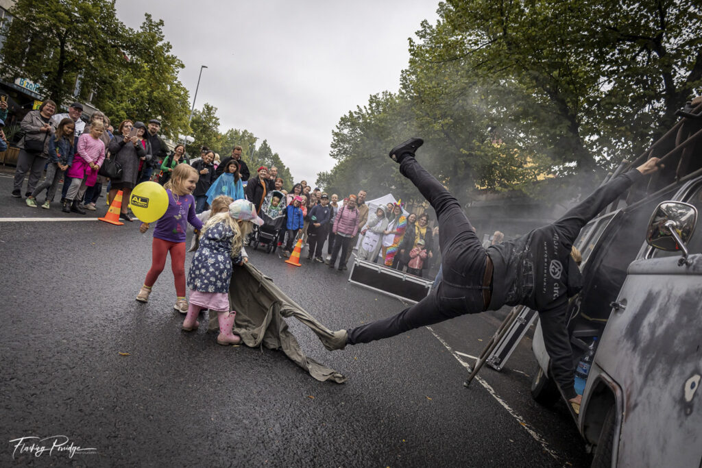Helsingintien alkuun rakentuu tapahtumakatu, jossa eri esiintyjät ja taiteilijat, tanssijat ja taikurit esittelevät taitojaan.