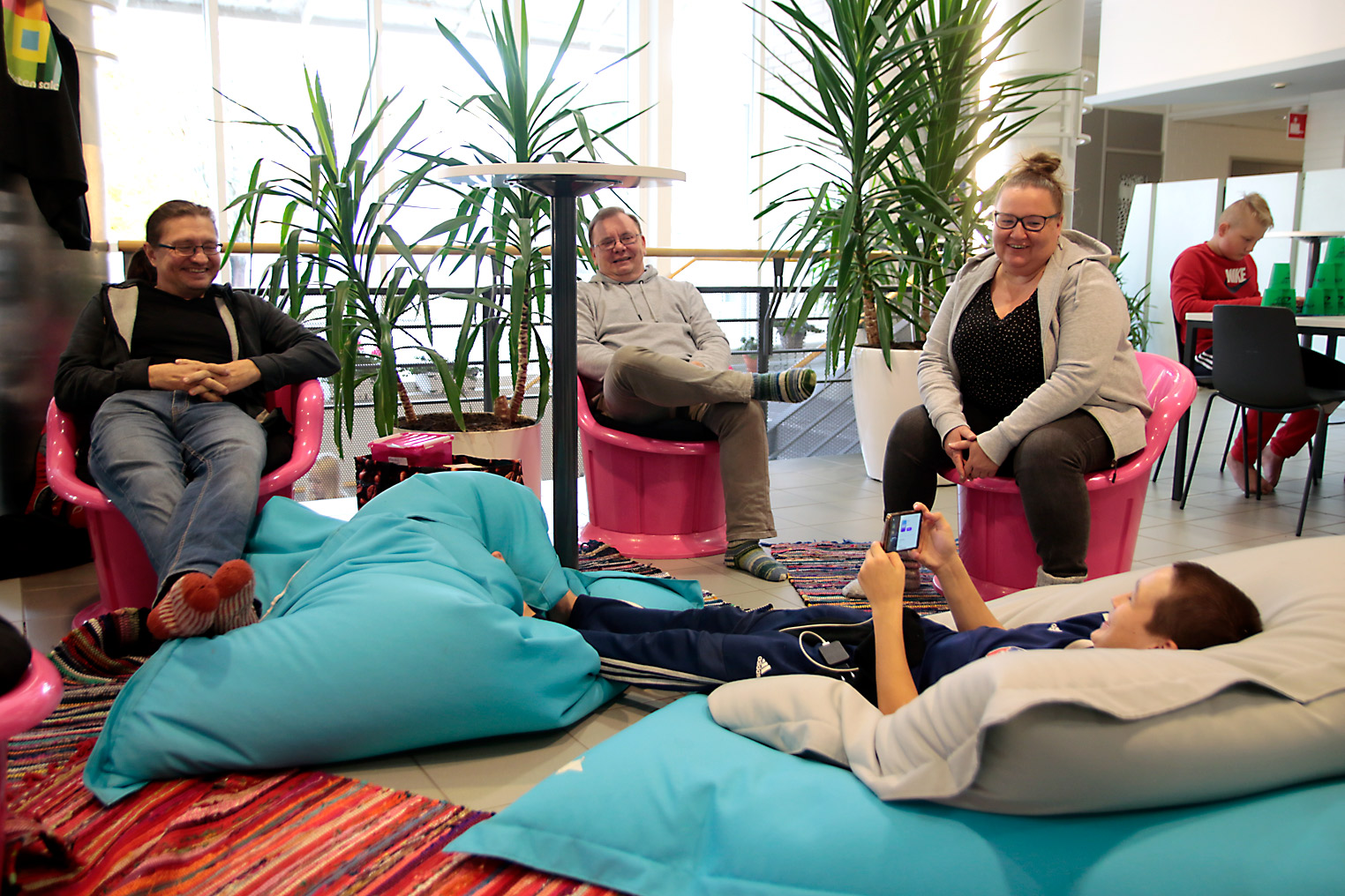 Hänen kanssaan ”pientä rentoutumishetkeä” viettivät Kristian Nuutinen, Mari Pöllänen ja isoilla tyynyillä pitkin pituuttaan loikova Alex – eli ”chillailua” sanan varsinaisessa merkityksessä.